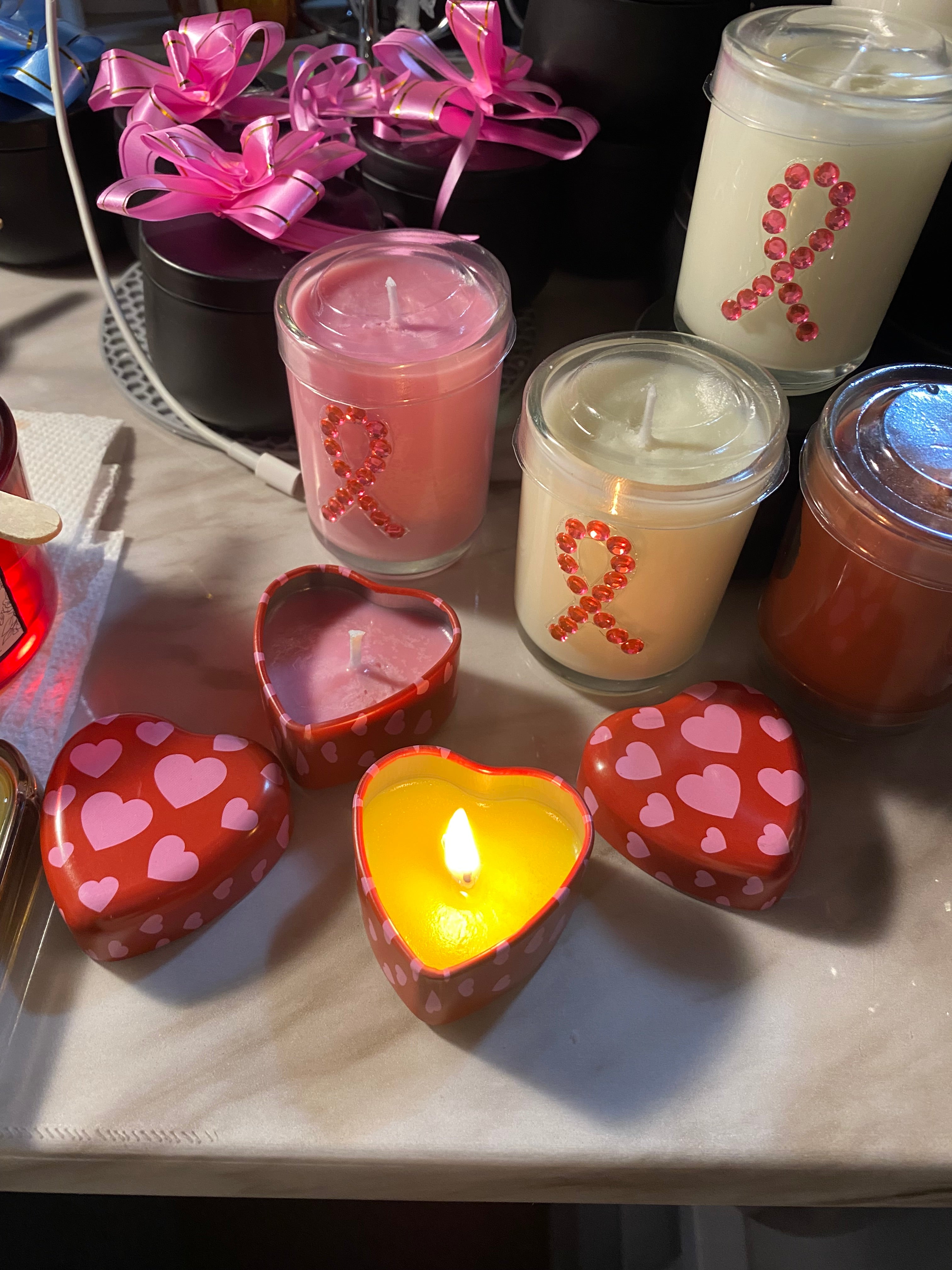 Experience the warmth of hand-poured candles infused with love.